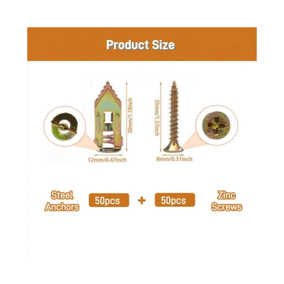 (100 pieces, Light Golden) Plasterboard Anchor, Self Drilling Plasterboard Anchor & Screw Kit, Hollow Screws & Anchors for TV, Bicycle, Cabinet Fixing