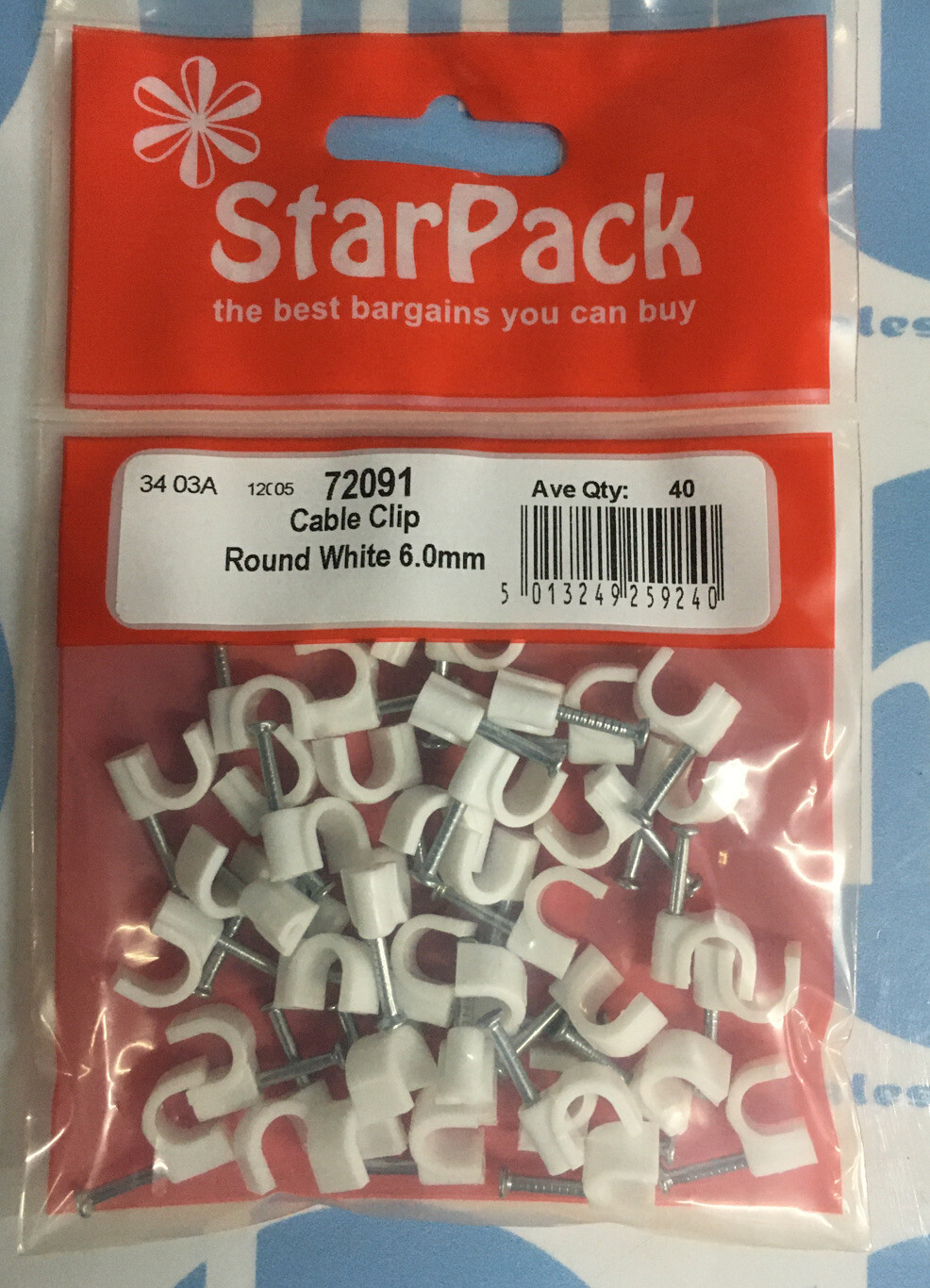 40 Cable Clips Round 6mm Wall Tack Fixing Nail DIY Electrical Wire TV Phone Lead