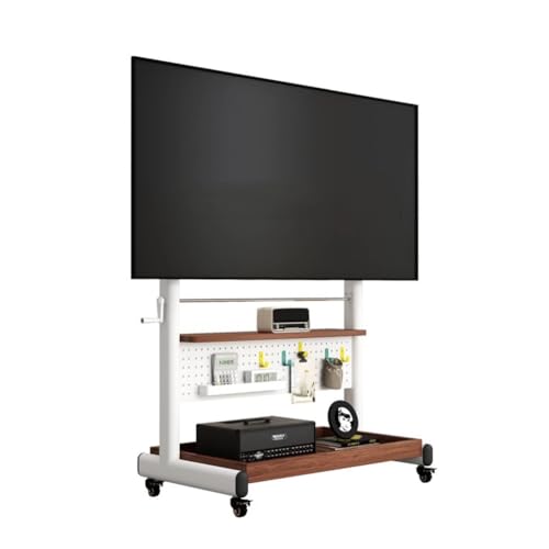 GRRICEPL Mobile TV Floor Stand, TV Stand With Metal Mounting Brackets And Shelves, Floor TV Stand With Locking Wheels, for 40 To 85 Inch Flat Panel Screens(White+Brown,80x52x120 cm)