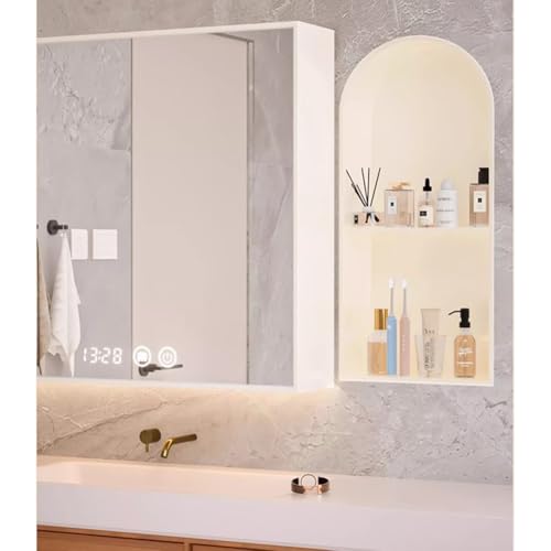 Sxlawesom LED Shower Niche, Stainless Steel Wall Niche with Light, Recessed Shower Shelf for TV Wall, Kitchen, Bathroom(White,62x28x15cm)