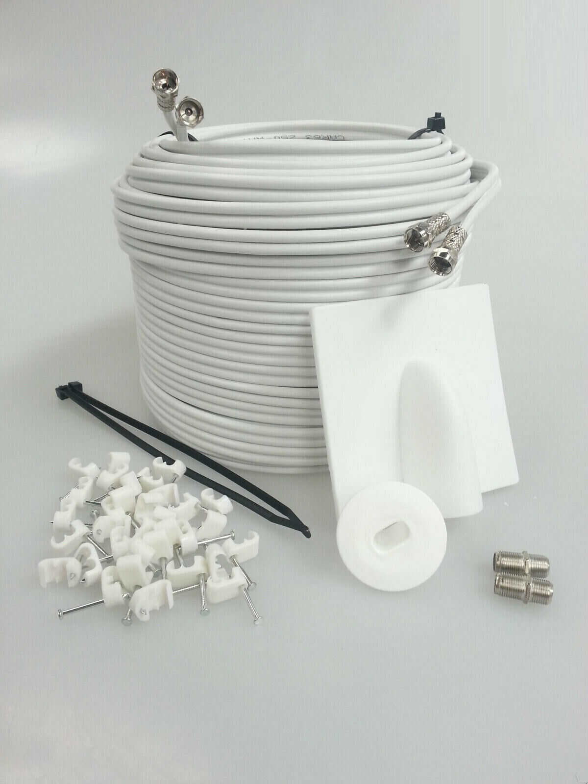 30M White Twin Shotgun Satellite Coax Cable TV extension kit For Sky HD Freesat
