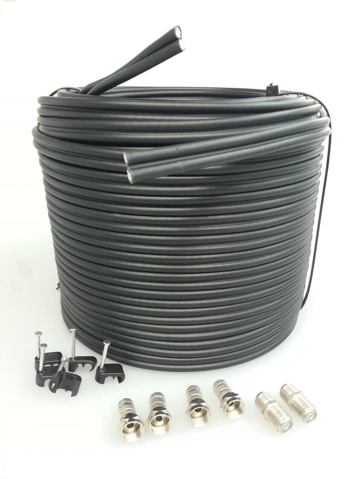 30m Black Twin Shotgun Satellite Coax Cable TV extension kit For Sky HD Freesat
