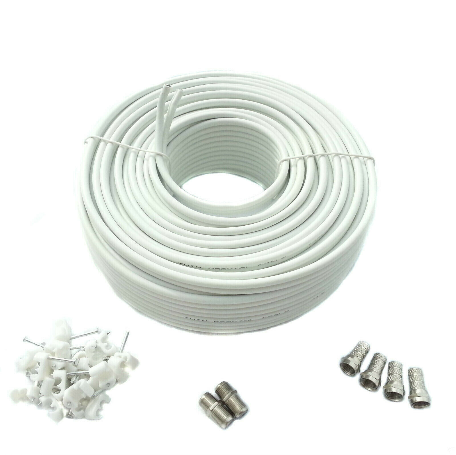 50M White Twin Shotgun Satellite Coax Cable TV extension kit For Sky HD Freesat
