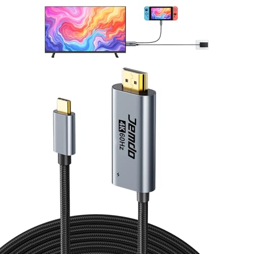JINGDU 4K@60Hz USB C to HDMI Dock Cable with PD100W Charging Port, Portable Switch to TV Connector Adapter for Nintendo Switch NS/OLED Screen Mirroring, Braided Cord, 2m, Grey