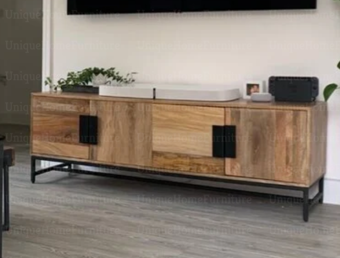 Large TV Stand Rustic Metal Media Cabinet Industrial Vintage Storage Sideboard