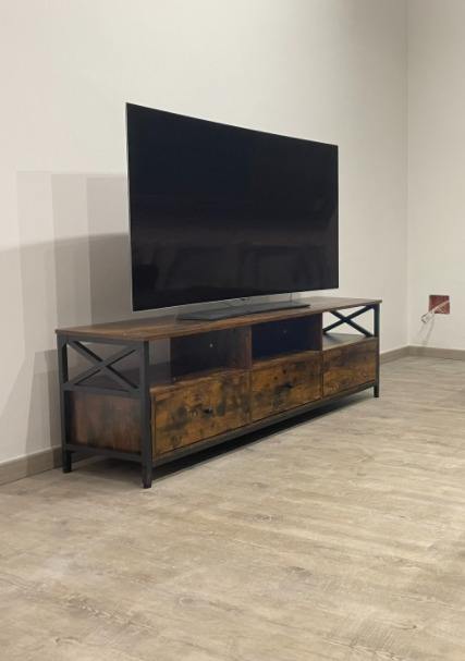 Large TV Stand Industrial Style Cabinet 3 Storage Drawer Rustic Media Shelf Unit