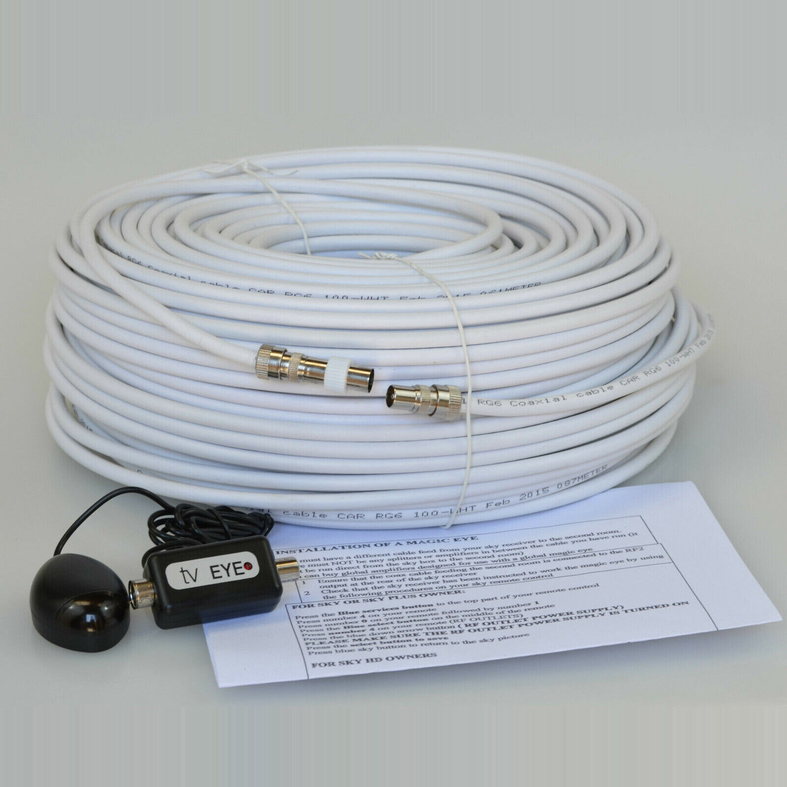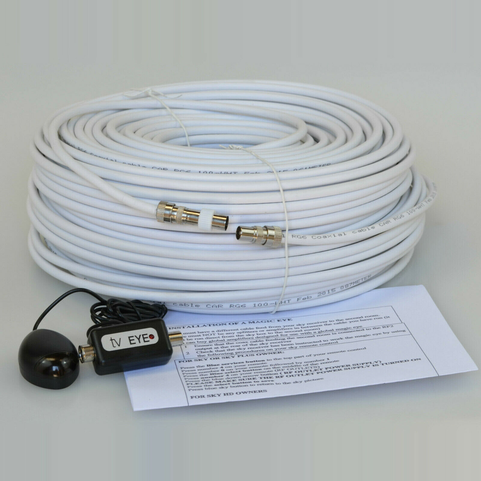 30M White Cable For Sky HD TV Link Magic Eye Kit, Everything You Need