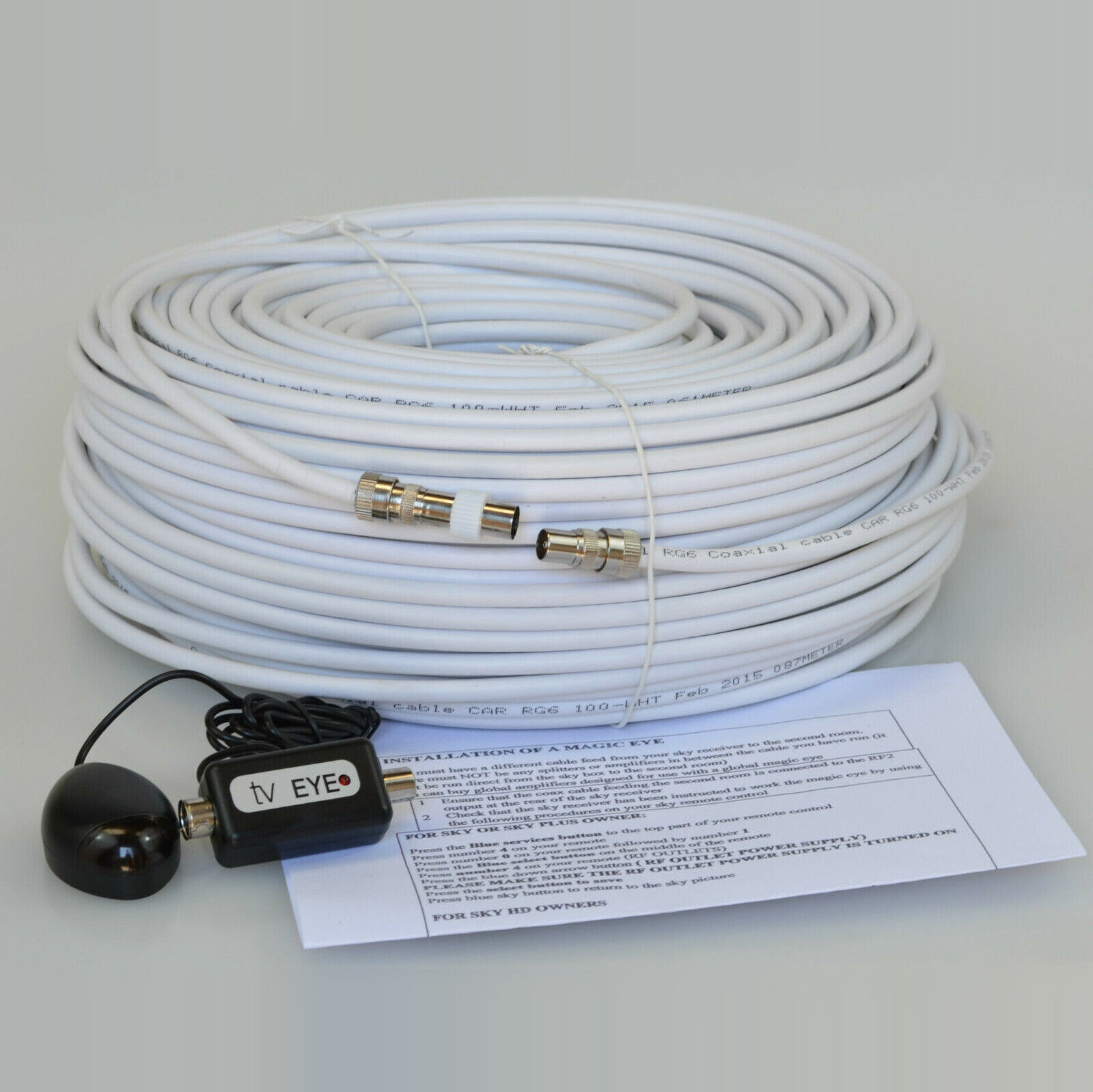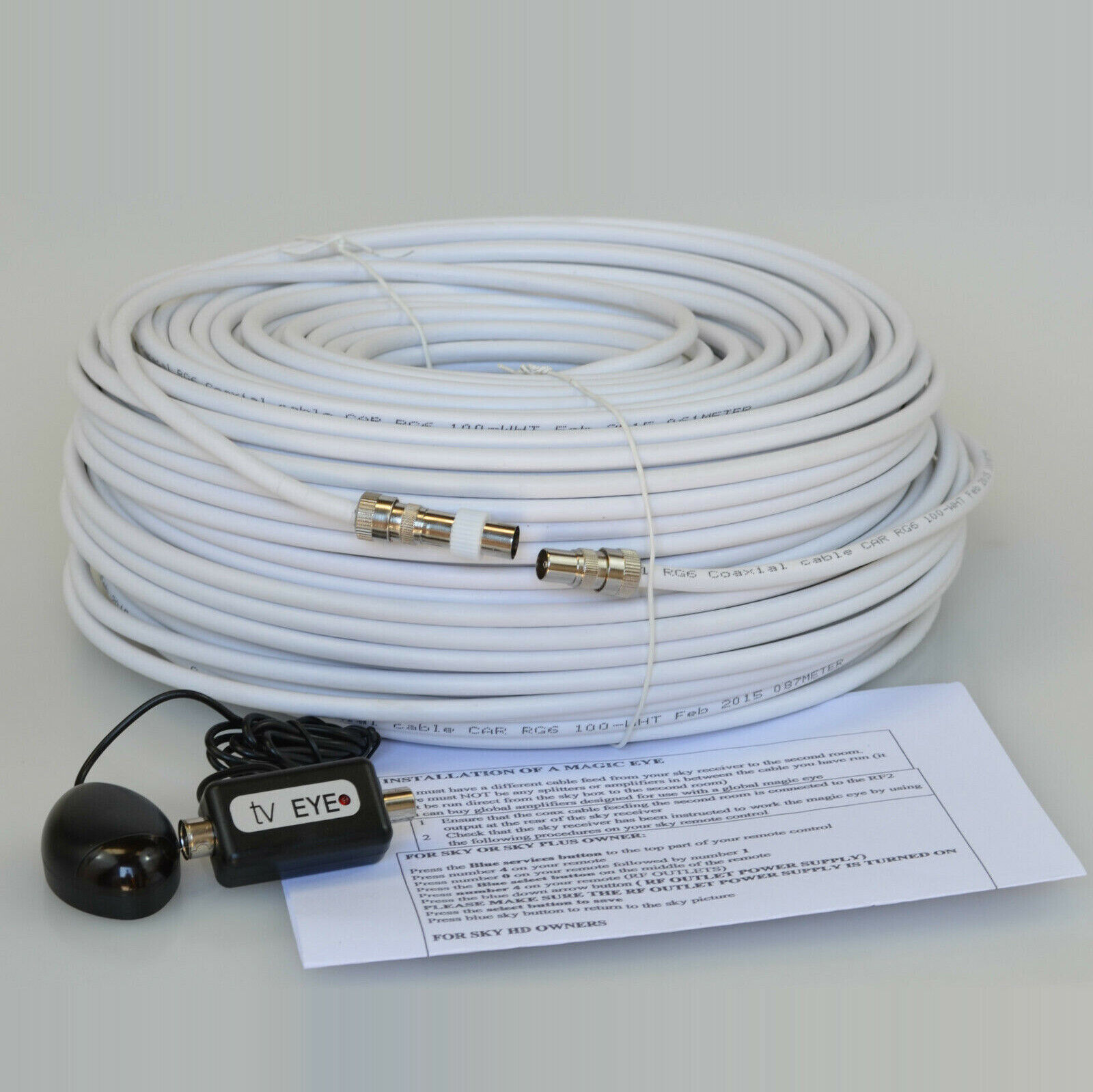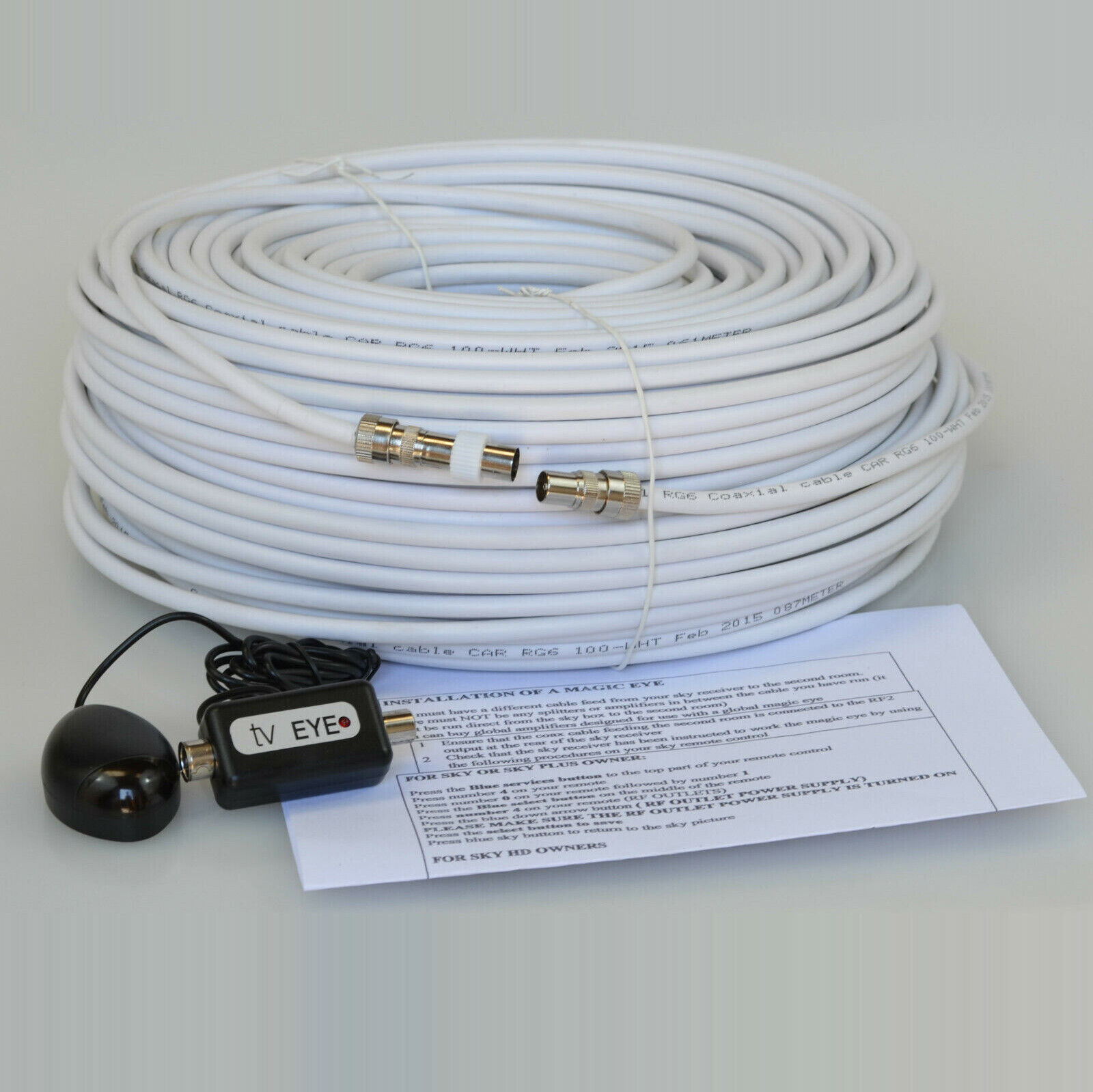 50M White Cable For Sky HD TV Link Magic Eye Kit, Everything You Need