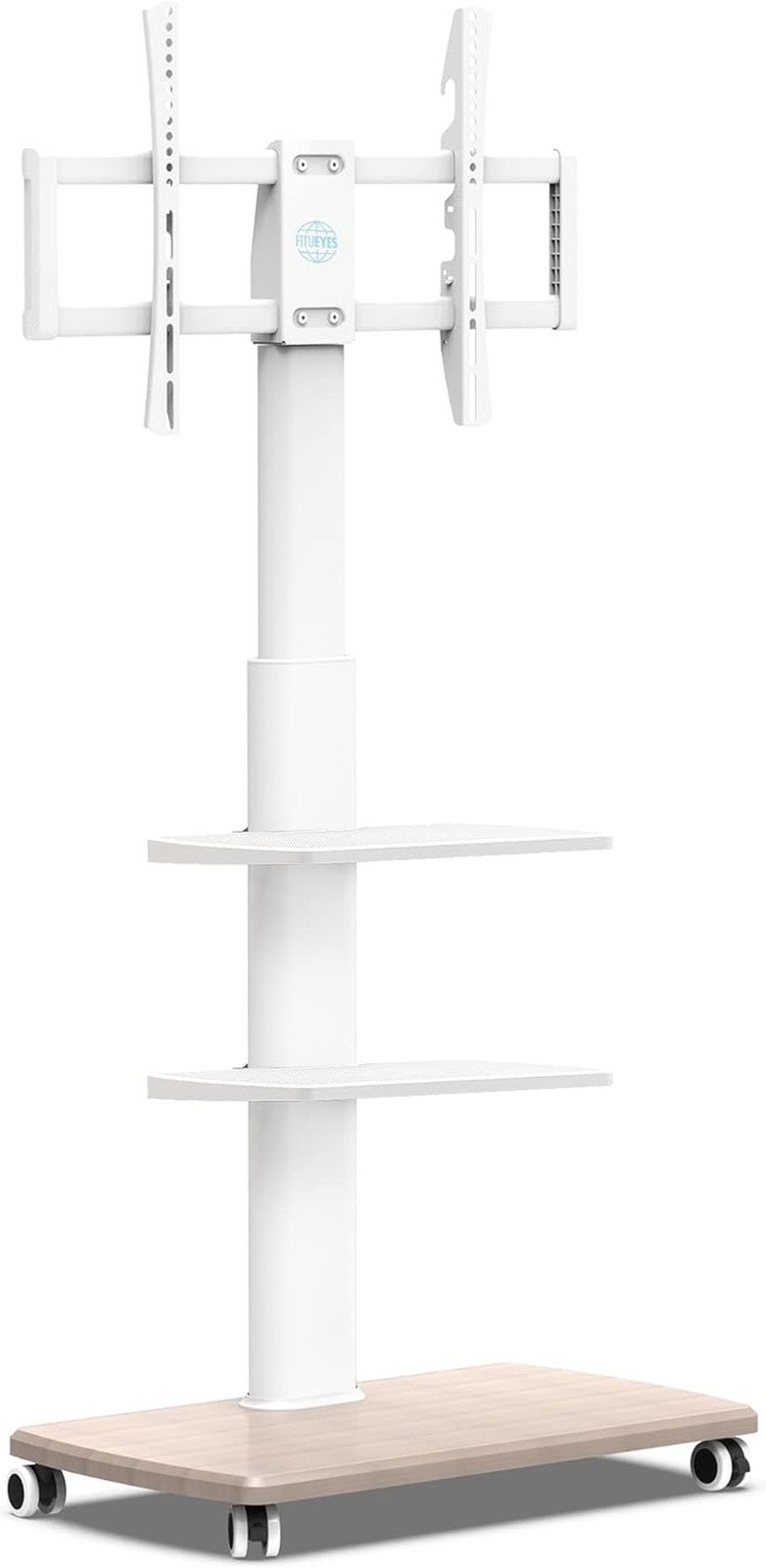 FITUEYES Design Mobile TV Stand on Wheels with 2 Shelfs for 32 43 55 65 Inchs Floor TV Stand Art Screen Angle ±15° Adjustable Height 946-1076,5mm Max. Load 40KG for Home, Lounge, Conference
