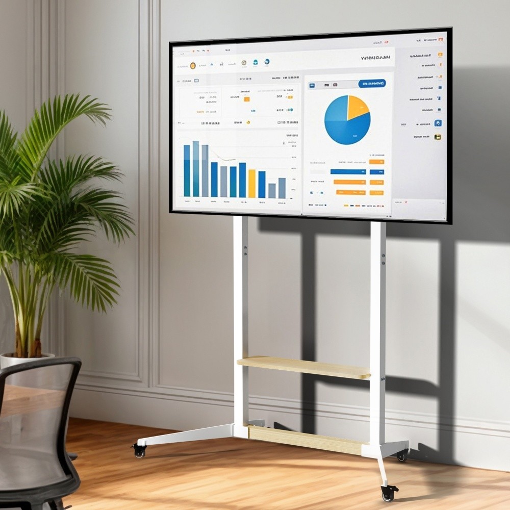 HYJYGM Mobile TV Stand Tall TV Display Stand on Wheels, with Laptop Shelf & Mount, Load 150kg Mobile TV Cart On Wheels