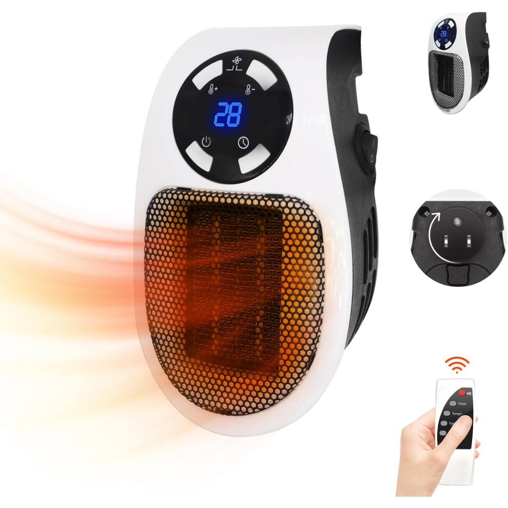 Upgrade 500W Electric Space heater, Wall Outlet Space Heater as Seen on TV with Adjustable Thermostat and Timer and Led Display, Compact for Office Dorm Room (350W-White)
