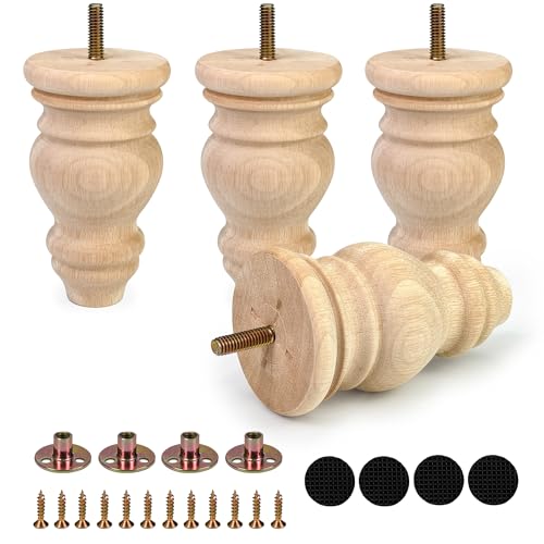 Aiminjey 10cm Wooden Furniture Legs with Mounting Plates Screws Set of 4 Solid Wood Unfinished Replacement Furniture Feet for Couch Cabinet Sofa Dresser Ottoman TV Stand Bed Home