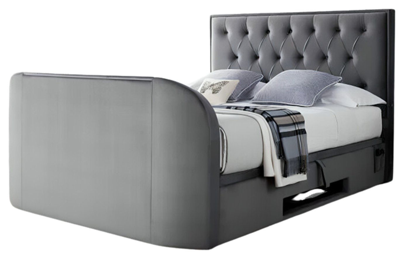 Smart TV Bed Lyon Kingsize Velvet TV Ottoman Bed - Grey