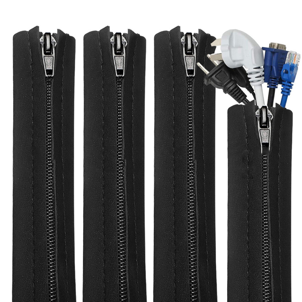 Cable Tidy Zip Sleeve, 4 Pcs Cable Protector, 2m Cable Management Sleeves With Zippers, For Pc/Tv Usb Cable Power Cord Audio Video Cable Home, Office,
