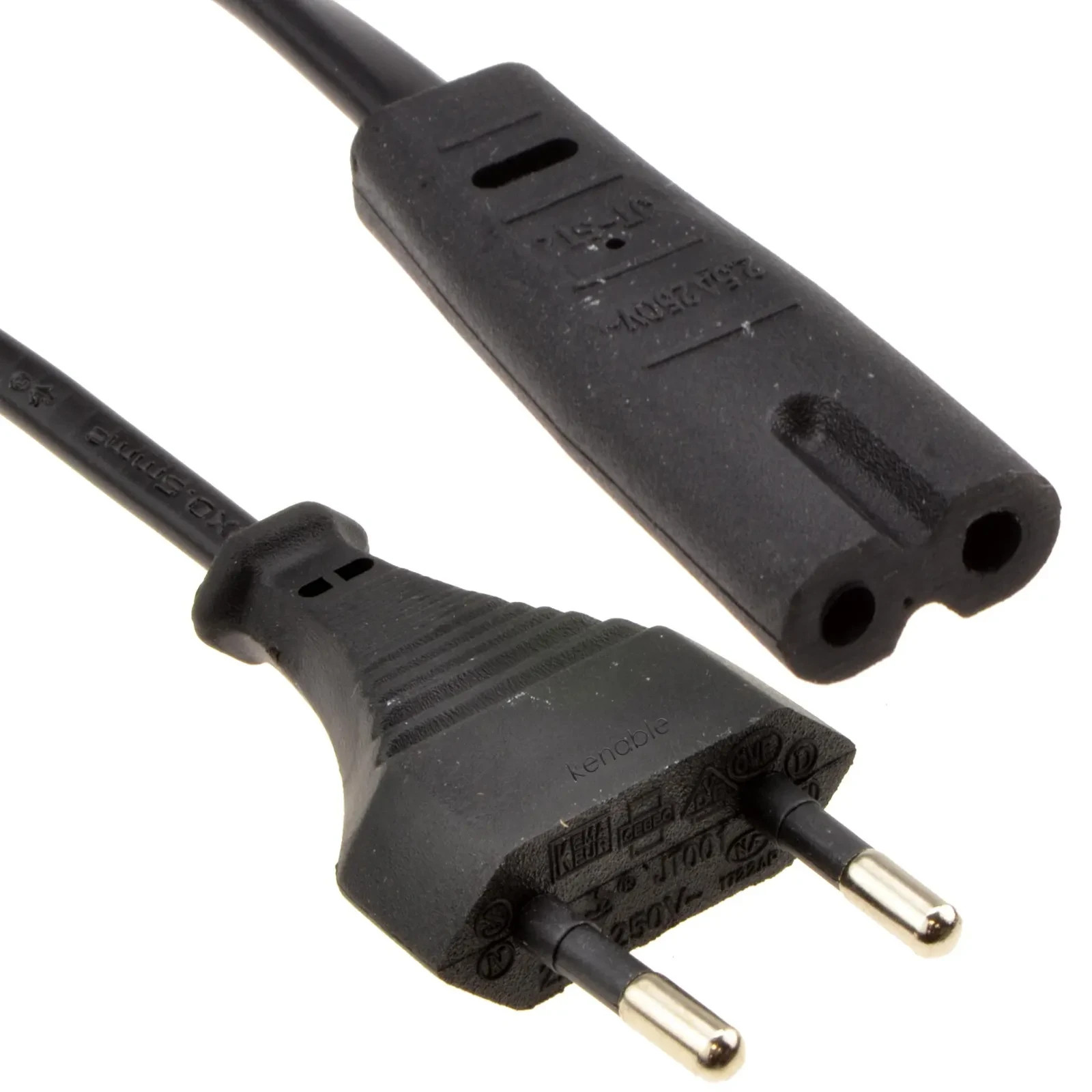1M-5M 2 Pin Euro Plug to Figure of Eight 8 C7 Plug Lead Mains Power TV Cable