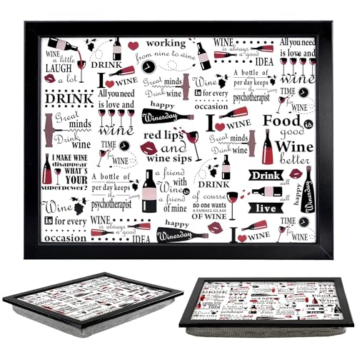 The Magic Toy Shop Wooden Lap Trays with Bean Bag Cushion - Wine Design - Large Padded Tray for Adults - Suitable for Food, Work, Drinking, Art, TV, Sofa, Bed - Great for Wine Enthusiasts
