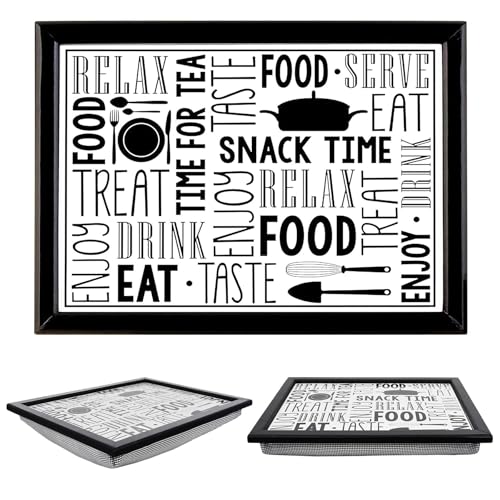 The Magic Toy Shop Wooden Lap Trays with Bean Bag Cushion with Snack Time Design - Large Padded Tray with Cushion for Kids Adults - Multipurpose, Suitable for Food, Work, Art, Studies, TV, Sofa, Bed