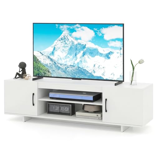 COSTWAY TV Stand Cabinet for 70 Inch TVs, 152cm TV Unit Media Entertainment Center with Charging Station, Storage Shelves and 2 Doors, Wooden Media Console Table for Living Room Bedroom (White)