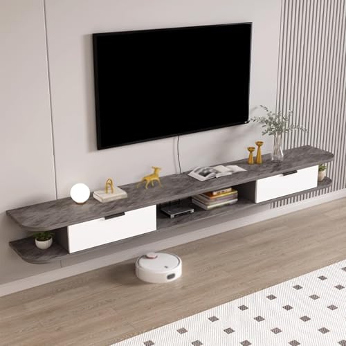 Tv Stand With Storage for Living Room Solid Wood Eco-board Wall-mounted TV Cabinet Large TabletopLarge Storage with Multiple Compartments Bedroom Tvi Stand with Threading Holes(Chrome,100x22x18cm)