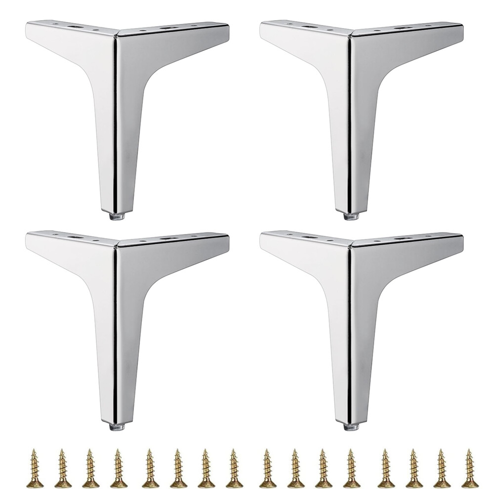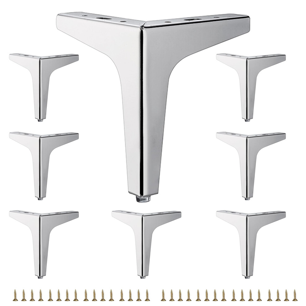 4 inch Shiny Chrome Metal Furniture Legs Set of 8 Triangle Metal Furniture Feet DIY Replacement for TV Stand Sofa Dresser Cabinet Vanity (Chrome