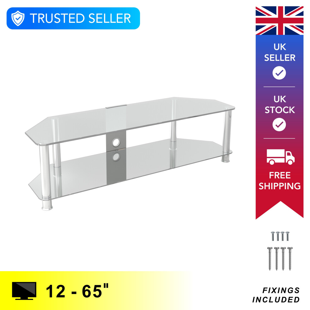 King Glass TV Stand 114cm, Chrome Legs, Clear Glass, Cable Management, for TVs up to 55"