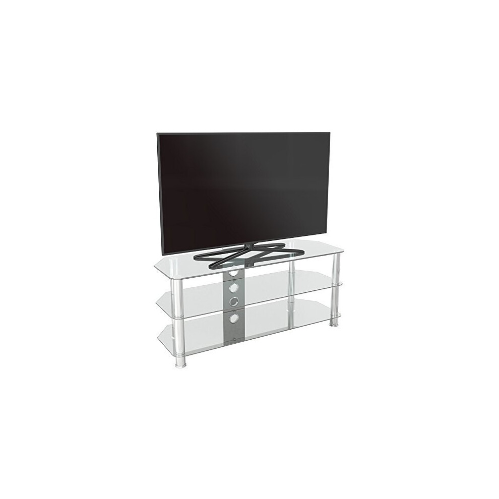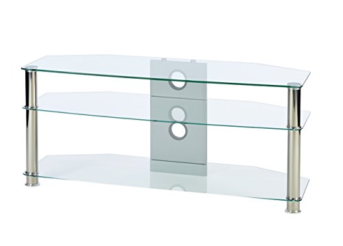 Clear Glass TV Stand 1150mm Wide 3 Shelf for Up To 55 inch TV's With Chrome Silver Legs, by MMT