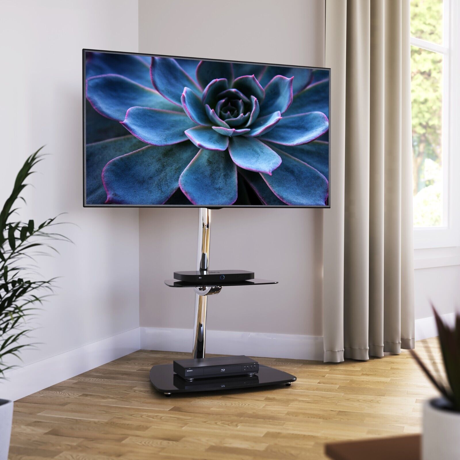 AVF Iseo FSL600ISBC Pedestal TV Stand with Bracket - Black Glass & Chrome, Black,Silver/Grey