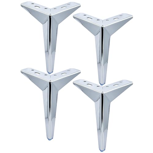 TCHOSUZ 4 Inch / 10cm Metal Furniture Legs, Set of 4 Heavy Duty Modern Diamond Triangle Table Desk Chair Sofa Legs Couch Feet With Screws For DIY Cabinet Cupboard TV Bench Stand 4 Pieces Chrome