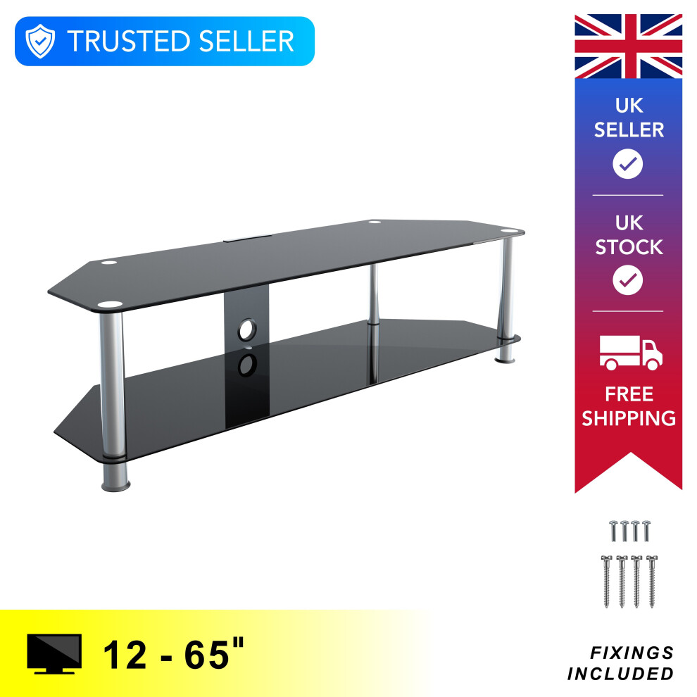AVF SDC1250 125cm Glass Corner TV Stand - Black & Chrome