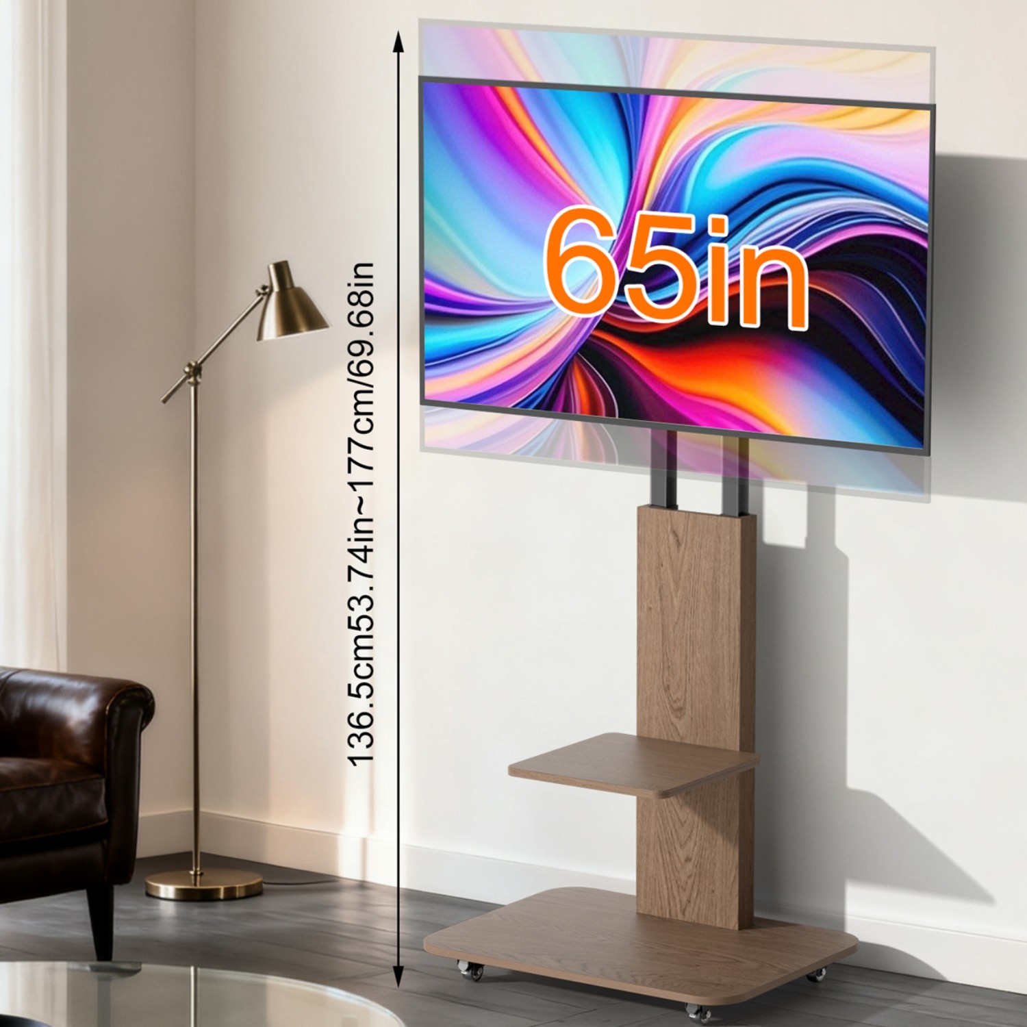 CMYAOYC Mobile TV Stand Rolling TV Cart with Wheels for 32-100 Inch Screens, Portable Floor Television Stands for Living Room with Laptop Wood Shelf, Height Adjustable(32-75 inches universal)