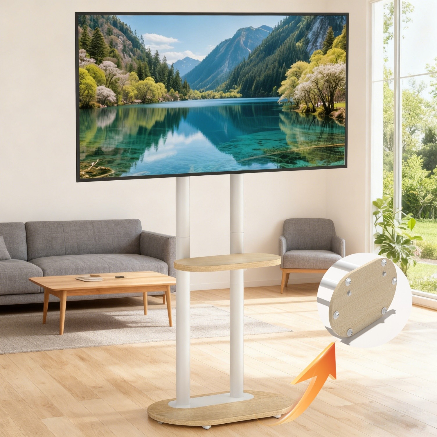 Mobile TV Stand On Wheels,Portable TV Stand For 40-100 Inch TV,Adjustable Heights TV Mount Stands With Large Wood Shelf And Wheels,Up To 220 Lbs(White,Large)