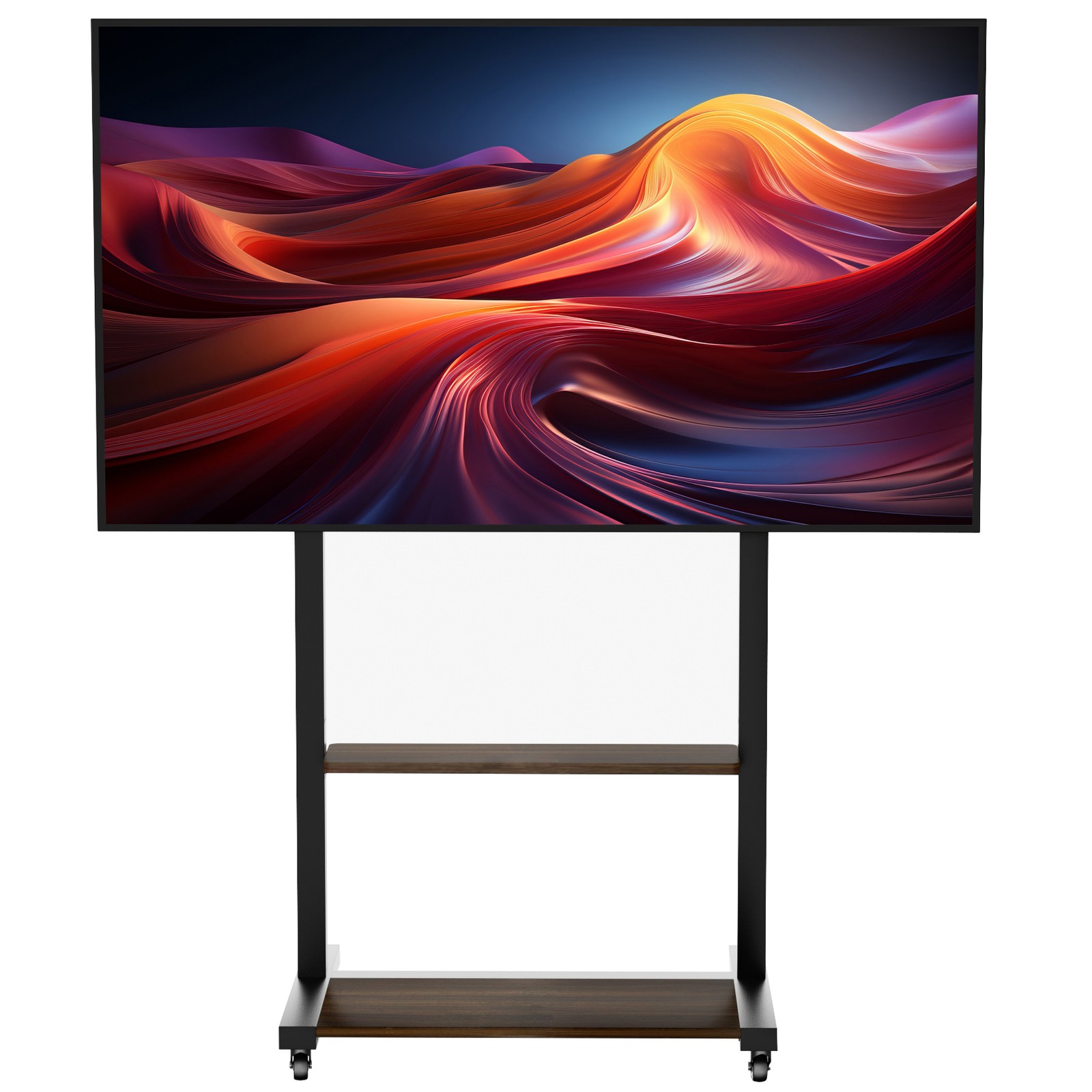Mobile TV Stand On Wheels,Portable TV Stand For 40-100 Inch TV,Adjustable Heights TV Mount Stands With Large Wood Shelf And Wheels,Up To 220 Lbs(Black,Large)
