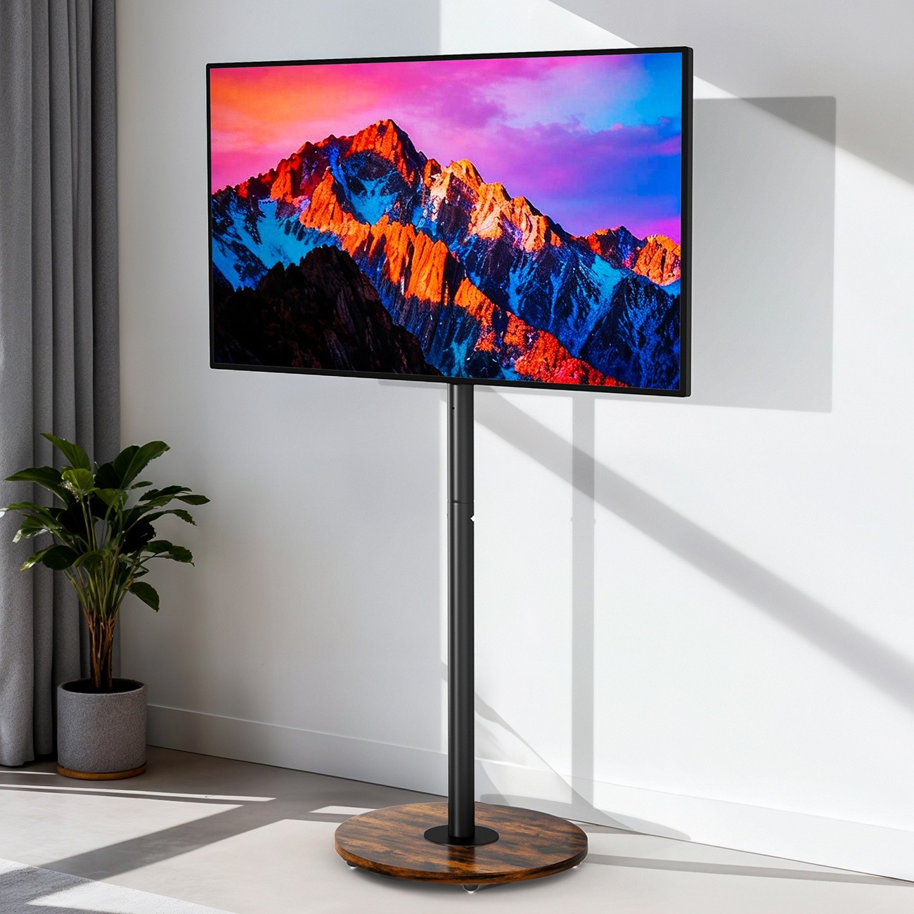 Smart Touchscreen Monitor with Android OS, Portable TV Stand on Wheels for Home Entertainment