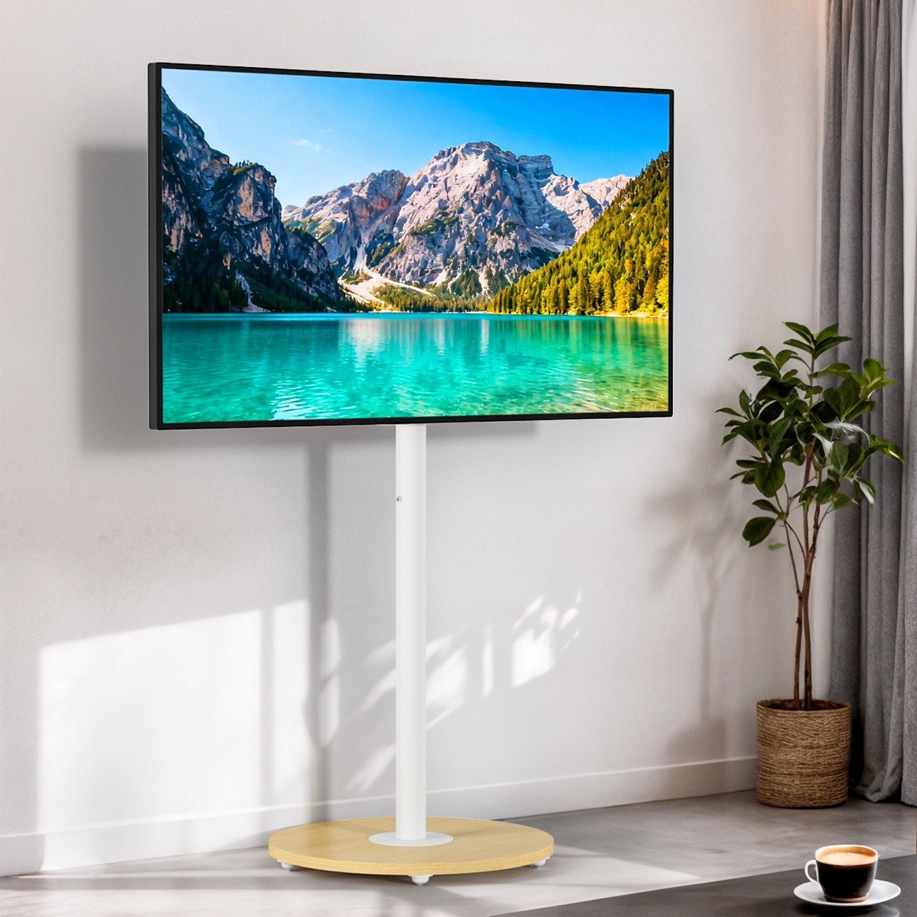 Floor TV Stand for 40-100 Inch TVs,Portable TV Stand on Wheels,Adjustable Heights,with Wood Shelf and Wheels,Holds Up to 220 lbs,VESA 800x600mm(White,S)