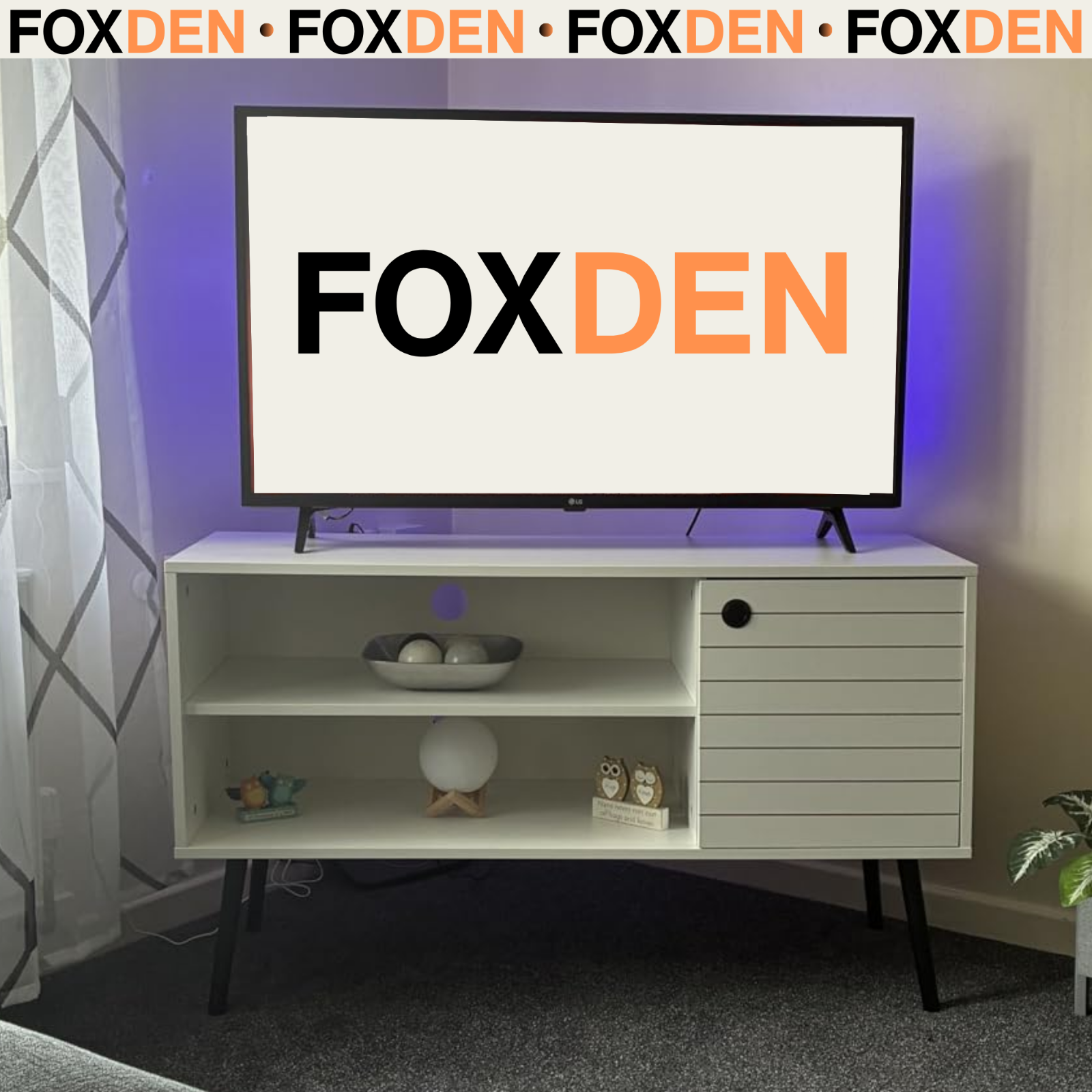 Modern White TV Stand Cabinet Media Unit Storage Shelves 110cm Striped Door TVs