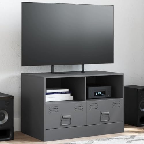 YuuSsea TV Cabinet, Anthracite, 67 x 39 x 44 cm, Made of Robust Cold-Rolled Steel, Universal TV Stand with 2 Shelves, Table TV Stand for Living Room