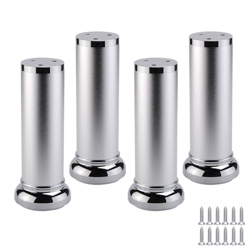 LRYELWA 4 Pcs Adjustable Furniture Legs Metal Sofa Support Feet,Replacement Support Legs for Cabinet Dresser TV Stand Coffee Table Chair Desk Bed Cupboard,With screws,Silver (150mm)