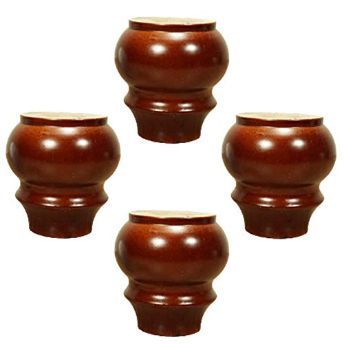 Set of 4 Wooden Furniture Legs,Pine Wood Round Gourd Feet,Round Replacement Bun Feets,for Cabinet,Couch,TV Stand,Coffee Table,Ottoman,with Mounting Plate and Screws,Height 9cm(Blac (Red Brown)