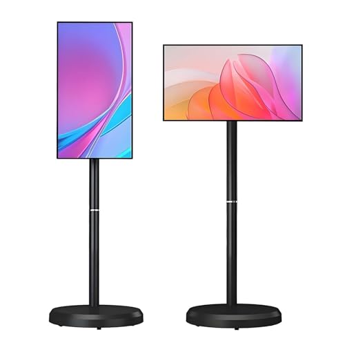 21.5-Inch Smart Touchscreen Monitor,1080p Mobile Portable TV Stand with Stand on Wheels, Android 14 & Built-in 6000mAh, Swivel Rotation Rolling Monitor,Multiple Projection Sharing(Black,4+64G)