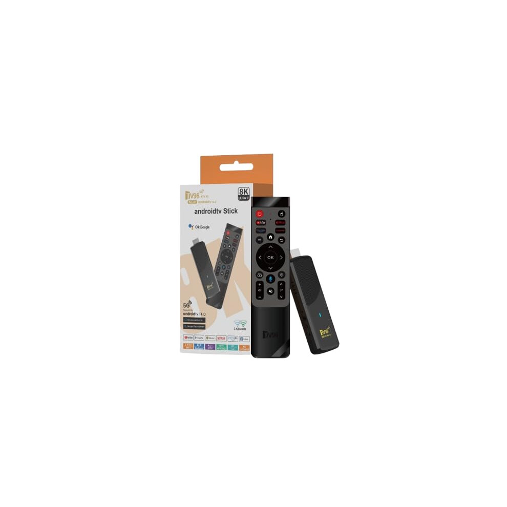 TV98 Android TV 14.0 Streaming Stick, 8K Ultra HD, 5G WiFi, 16GB Storage, 2GB RAM, Bluetooth Remote Control, Black