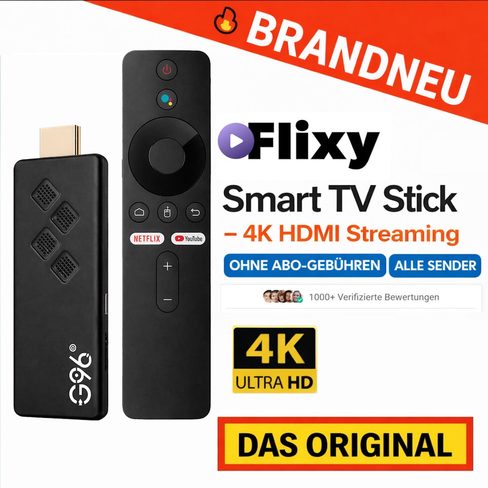 Flixy ™ Smart TV Stick - 4K HDMI Streaming Without Abo-Gebühren All Transmitter