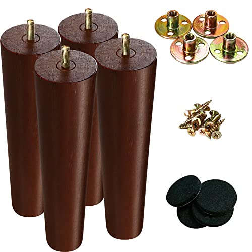 KOIKEY 25cm Wooden Furniture Legs, Solid Wood Sofa Legs Set of 4, Mid-Century Modern Replacement Feet with Mounting Plate & Screws for Cabinet Bed Chair Couch Dresser Table TV Stand, Walnut Colour