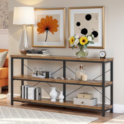 NicBex 55.12" Console Table,Modern Console Table with 3-Tier Storage Shelves,Extra Long Sofa Table bhind Couch,Industrial Entryway Table TV Stand,Console Tables for Living Room,Entryway,Rustic
