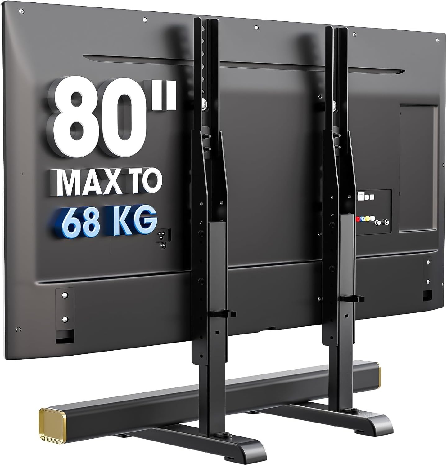 AX WABER Universal TV Stand, Table Top Stand Base Wobble-Free Replacement for Most 24 to 80 Inch LCD LED TVs, 7 Height Adjustable Legs Hold up 68kg,