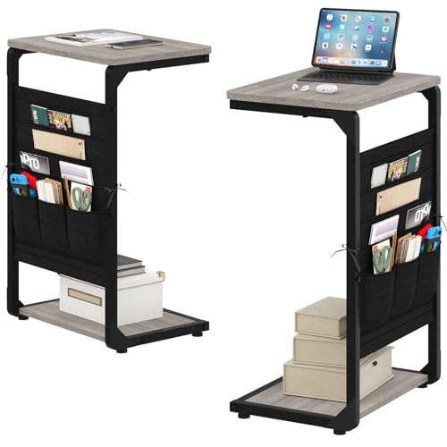 Vovonusy C-Shaped End Tables, TV Trays Set of 2, Small Side Table for Couch with Storage Bag, Sofa Table for Living Room, Bedroom, Bedside ET-P-GYW2