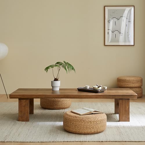 FUKEFUZ Solid Wood Bed End Tables,Tv Trays with Rounded Corners,Small Side Stand Natural Grain,Nightstand Two Colors,Coffee Night Stand Japanese Style for Tatami,Living Room,Bedroom(Brown,70.9in)