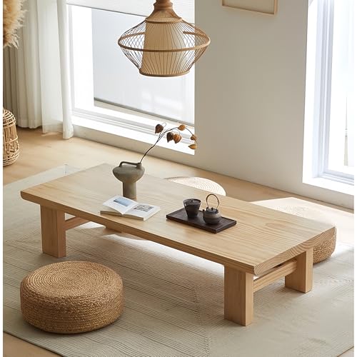 FUKEFUZ Solid Wood Bed End Tables,Tv Trays with Rounded Corners,Small Side Stand Natural Grain,Nightstand Two Colors,Coffee Night Stand Japanese Style for Tatami,Living Room,Bedroom(Brown,78.7in)