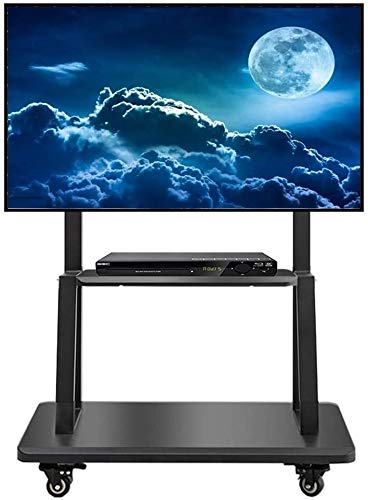 Rolling Tv Stand Mobile Tv Stand Tall Swivel Freestanding Trolley with Shelf,Fits 55/60/65/70/75 Inch LCD LED Plasma Flat Screen Panel,Black,Load 110kg