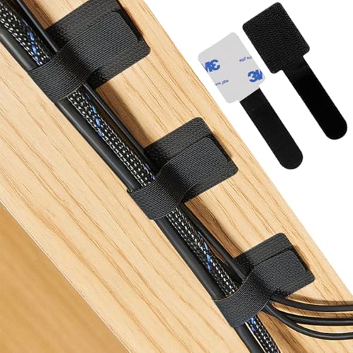 Wanheart 50 PCS Under Desk Cable Management,Self-Adhesive Cable Organizer, Adjustable Loop Cable Ties,for PC/TV/Router No-Drill Cable Organization (Black)