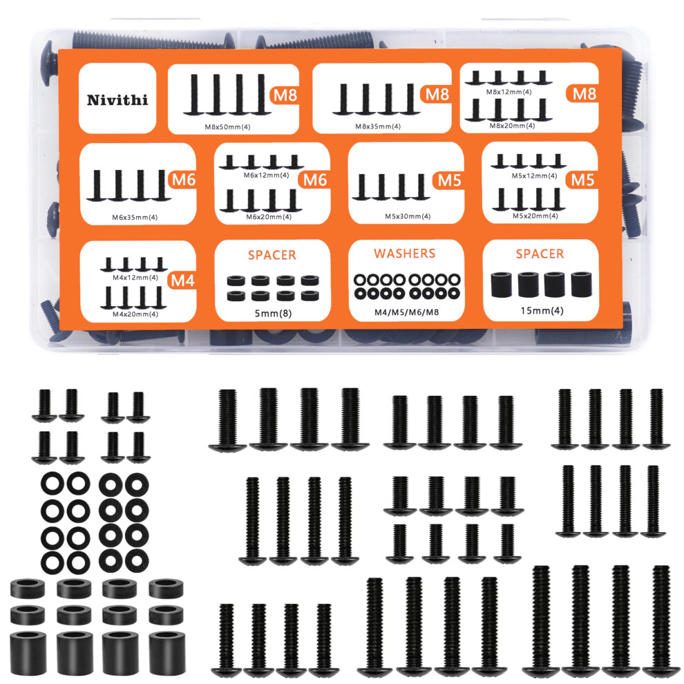 Nivithi 76pcs TV Bracket M4/M5/M6/M8 VESA Screws Kit (Black/Iron),with Washers/Spacers-TV Mounting Screws Hardware for Wall Brackets